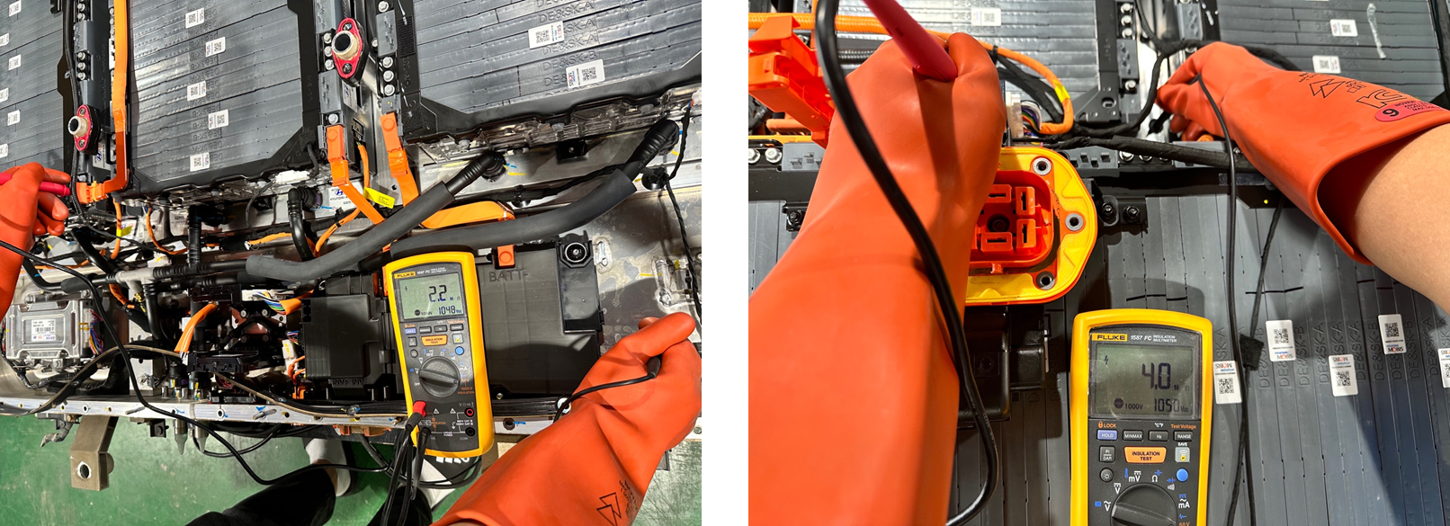 절연파괴의 원인을 찾기 위해 고전압 시스템 부품에 대한 육안 검사 및 추가적인 절연 저항 측정을 진행합니다.